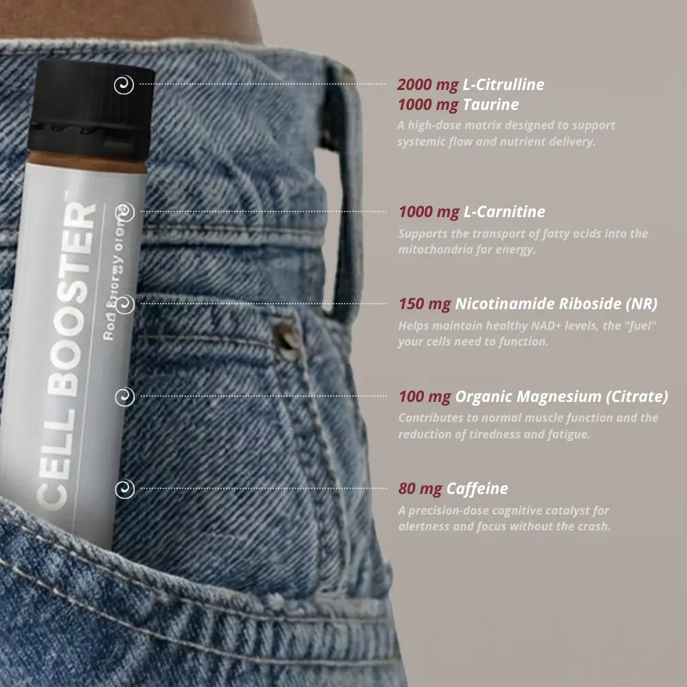 CELL BOOSTER™ (6 SHOTS) is a rapid-action performance shot engineered by pharmacists and medical specialists to ignite cellular energy and optimize systemic flow. It is the definitive choice for professionals and athletes requiring immediate activation and focus.